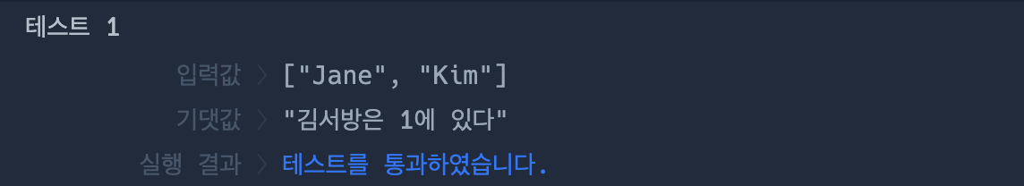 | ["Jane", "Kim"] | "김서방은 1에 있다" |