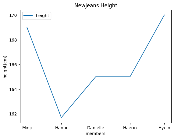 plt_newjeans=newjeans.plot(x='name', y = 'height', color='blue', label='h', ax=plt_newjeans)
